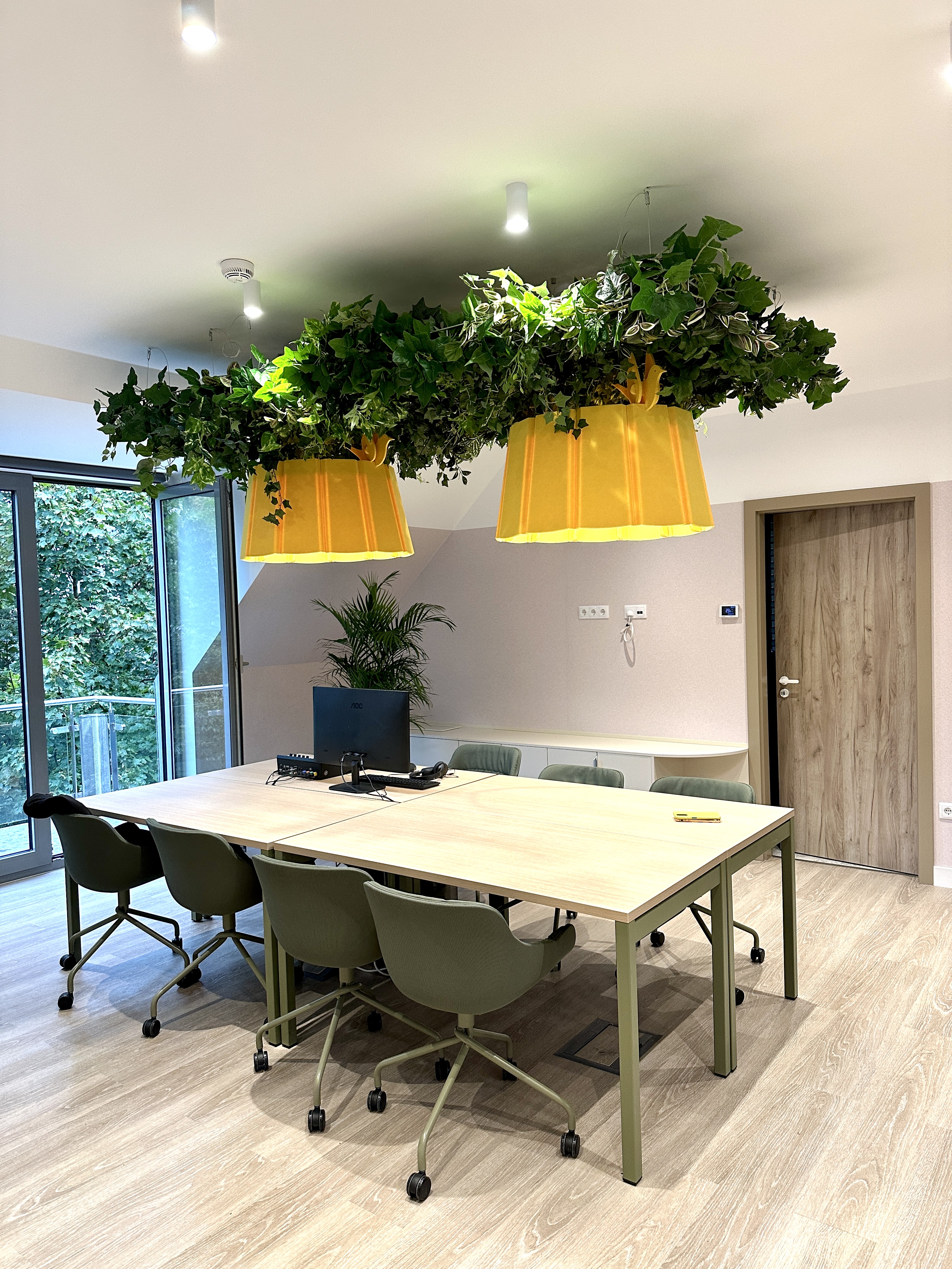 A műnövényeket olyan helyekre ajánljuk ahol az élő növényeknek nem megfelelő a környezet. Nincs természetes fény, nehéz a megközelítés a rendszeres gondozásikhoz. Ebben az esetben javasoljuk hogy a növénydekorációt magas minőségű műnövények használatával oldjuk meg. Egy ablaktalan tárgyalóban a műnövények növelik a komfortérzetet, A mennyezeten elhelyezett műnövény kompozíció zöldebbé varázsolja az irodateret.